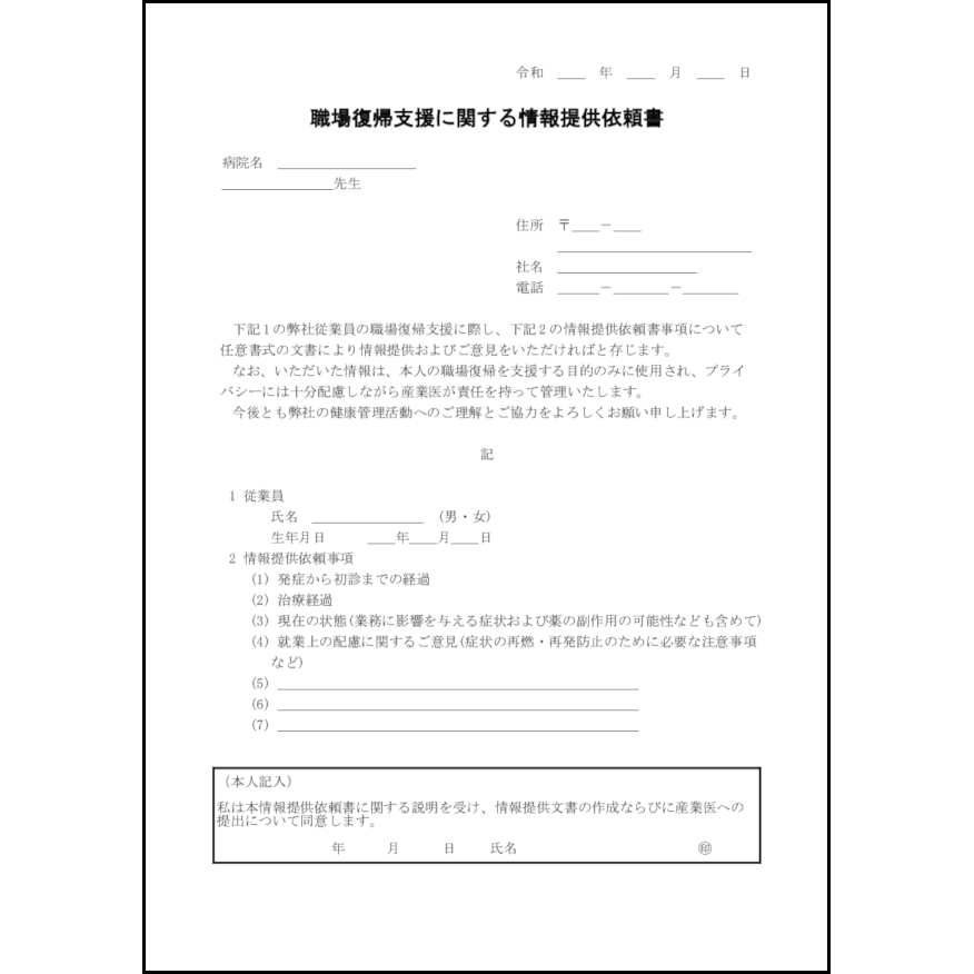 職場復帰支援に関する情報提供依頼書