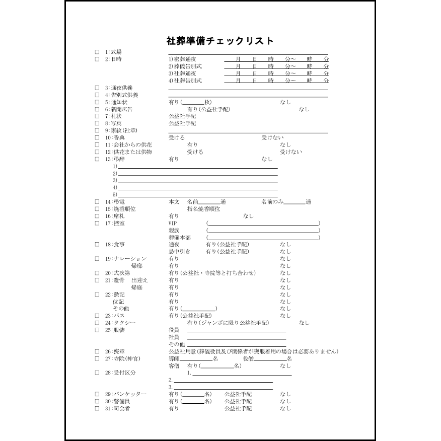 社葬打ち合わせ書(担当者用)