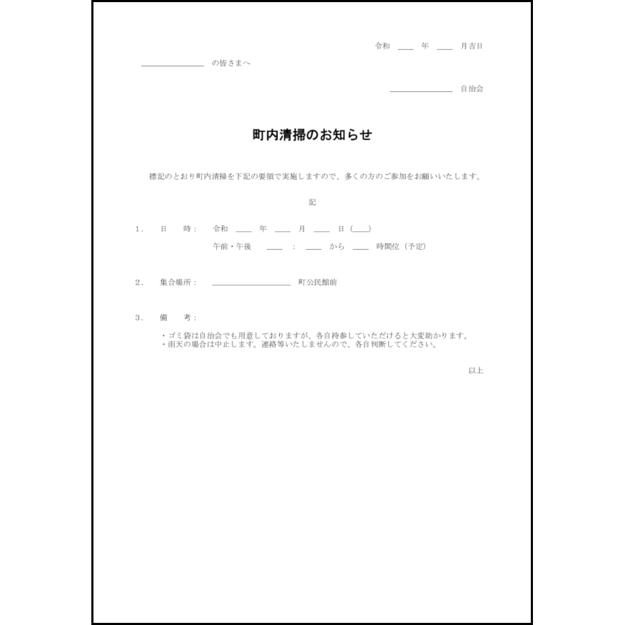 町内清掃のお知らせ