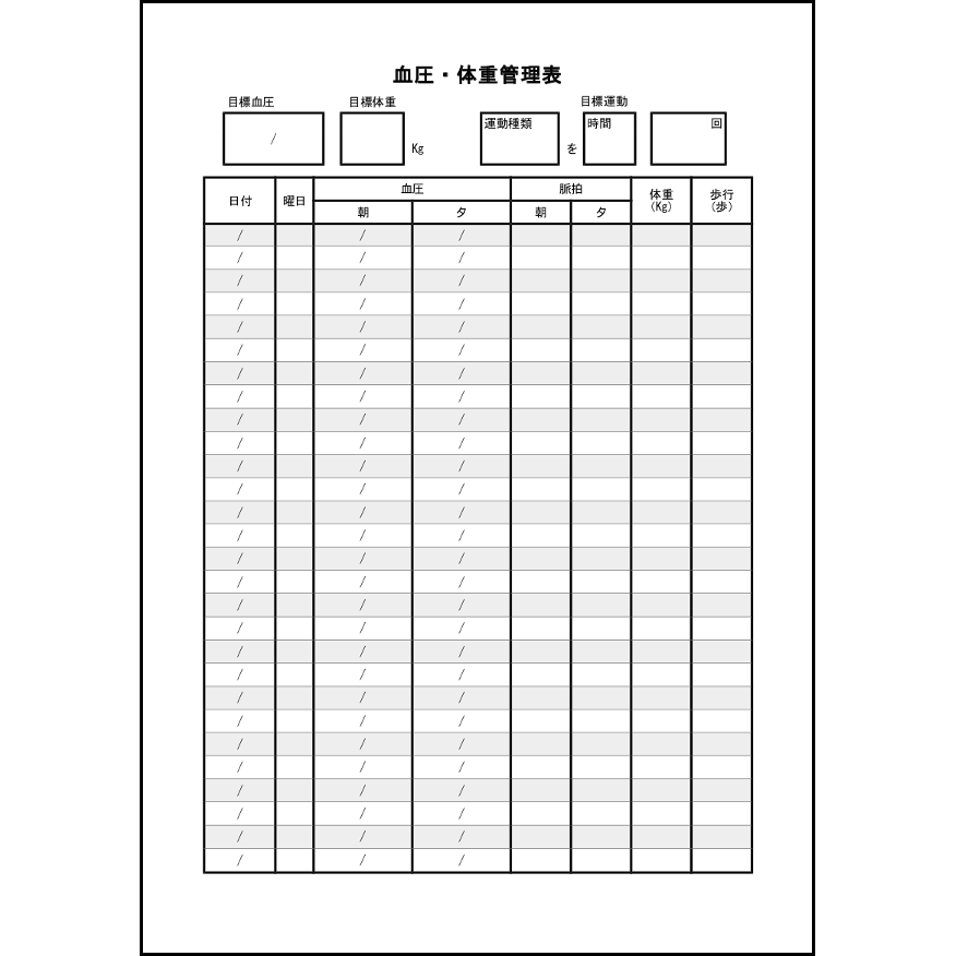 体重・血圧測定記録用紙