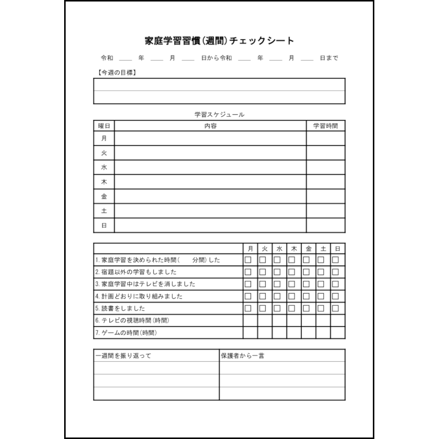 家庭学習習慣(週間)チェックシート